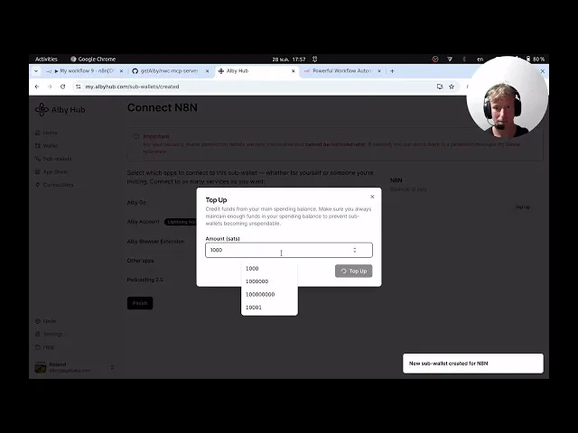 What really sets the Alby MCP server apart is how easy it makes bitcoin payment integration for AI tools. Instead of dealing with local servers or complex setups, you can just drag and drop your wallet in any MCP enabled AI agent (e.g. N8N).
