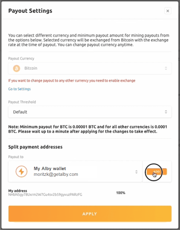 That’s it. Now you’ll receive payouts directly into your self-custodial Alby Hub wallet.