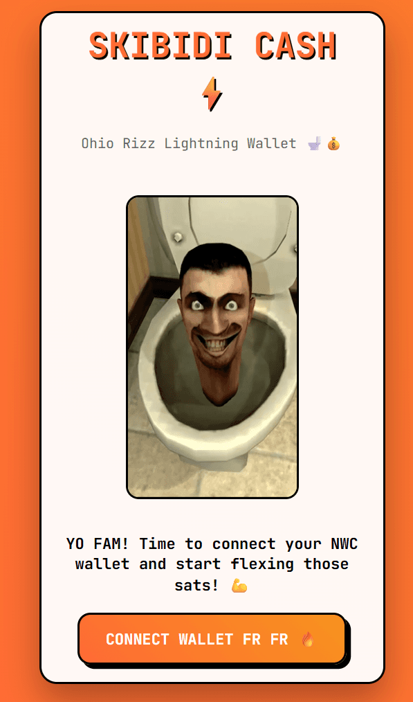 Skibidi Cash: a web NWC wallet interface with a mindrot theme