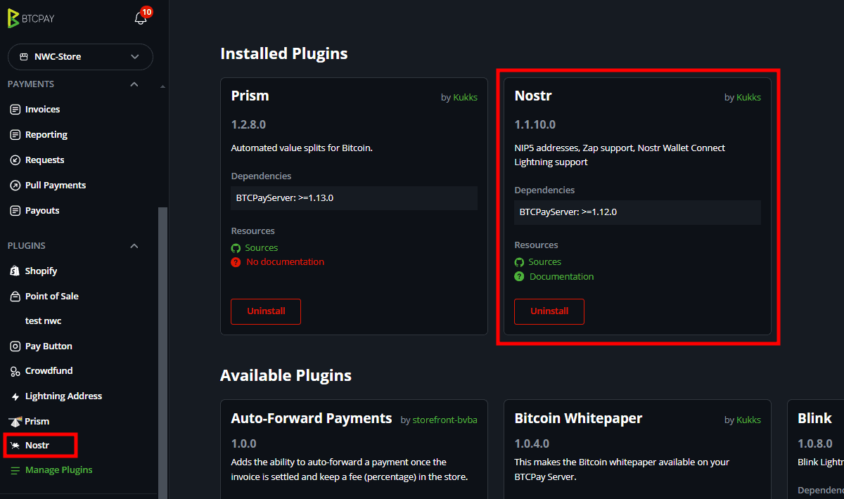 Step 1: Install the Nostr plugin in your BTCPay instance